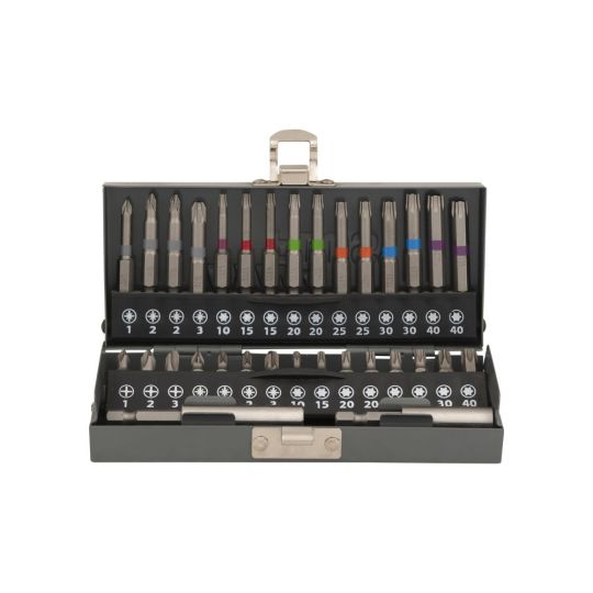 Een complete set met bitten. De set is verpakt in een stevige opbergkoffer. De set bevat de volgende bitten: