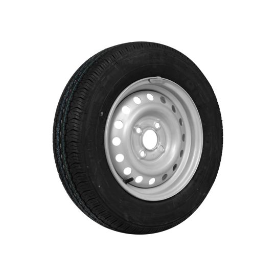 Een complete aanhanger wiel voorzien van een Kenda band (155/80R13) en een robuuste stalen velg. Voor aanhangers, boot- en paardentrailers die uitstekende grip en lange levensduur eisen.