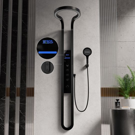 De mat zwarte Aura Luxe Waterval Doucheset is dé ultieme upgrade voor je badkamer. Met zijn elegante design, geavanceerde LED-display en multifunctionele mogelijkheden brengt deze doucheset een exclusieve touch van luxe en comfort in je dagelijkse routine. Of je nu op zoek bent naar ontspanning, revitalisatie of een moderne badkameruitstraling, deze set biedt alles wat je nodig hebt.