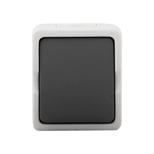 Een waterdichte opbouwschakelaar met een opbouwhoogte van 5,5 cm. De basis heeft een oppervlakte van 55x80 cm.