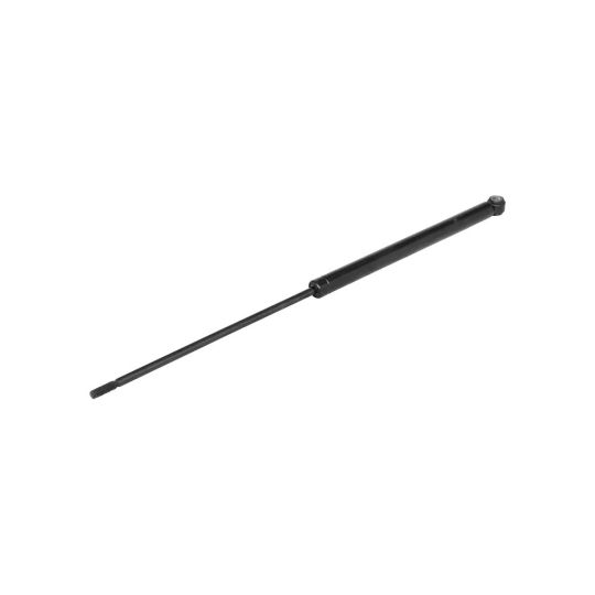 Een schokdemper met aan de ene zijde een oog en aan de andere zijde een schroefdraad. De specificaties van de schokdemper zijn: