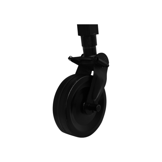 Een steunwiel met vierkante 70 mm poot. De hefafstand is 300 mm. Het gewicht van het steunwiel is 13,2 kg. Het draagvermogen van het steunwiel is 1000 kg. Het wiel is gemaakt van glad staal.