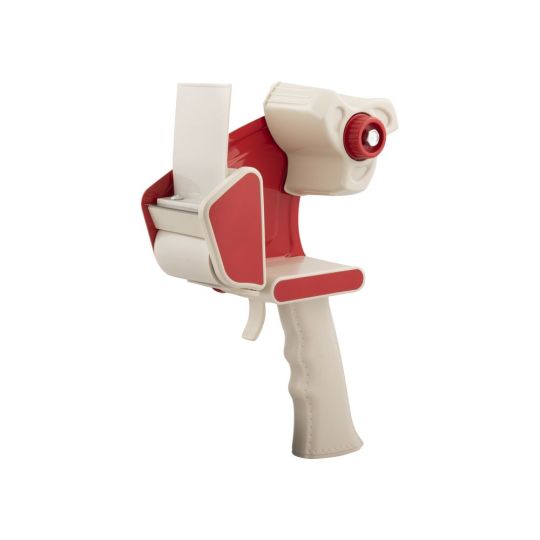 Tapedispenser, geschikt voor brede rollen plakband. Deze plakbandhouder is voorzien van een snijmes. Materiaal: kunststof